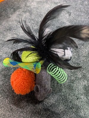 Sponsored toys will go with him to his forever home.