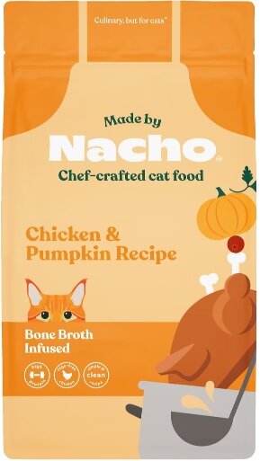Sponsor a bag of kibble. Nacho Bone Broth Infused Chicken and Pumpkin recipe.